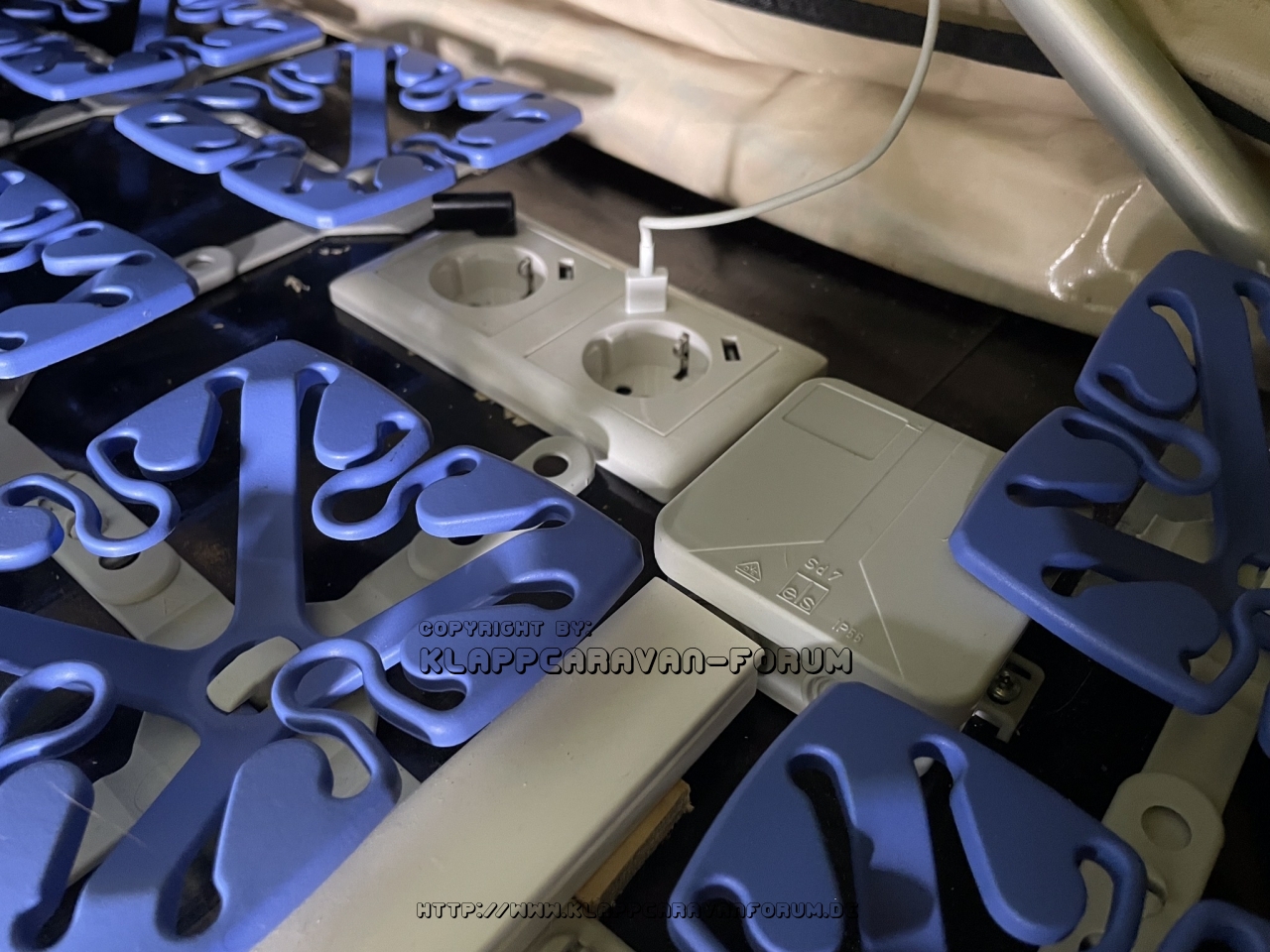 Steckdosen unterhalb der Matratze mit zusätzlichen USB-Anschlüssen.