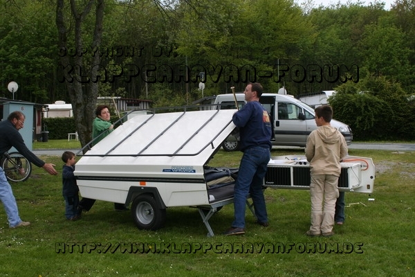 Nachdem Aufstecken der Stützfüsse auf den Deckel => Aufklappen Teil1
