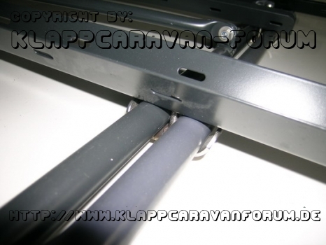 Hier sieht man wie mittels Art U-Eisen der Träger an der Gepäckgalerie befestigt wird.
