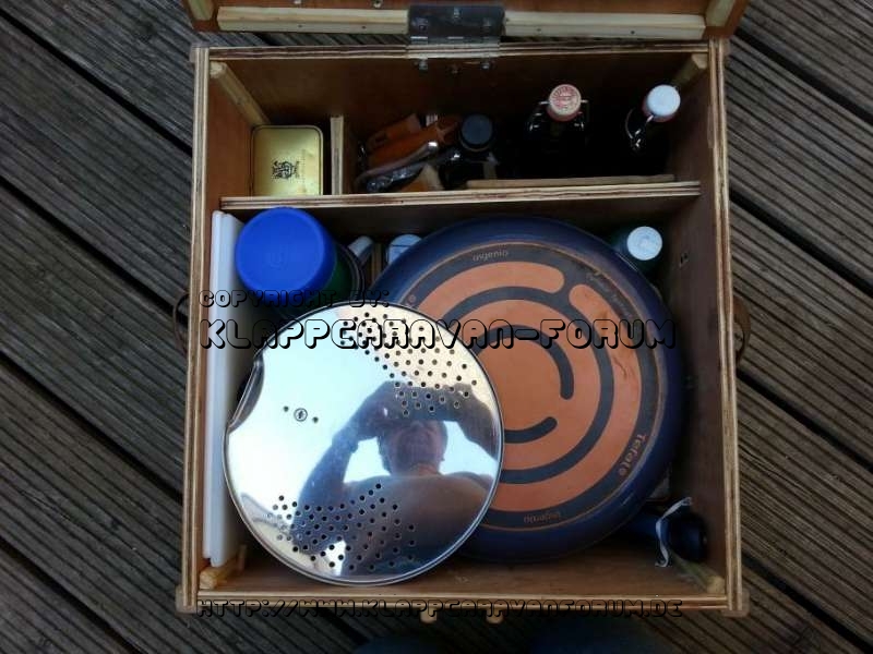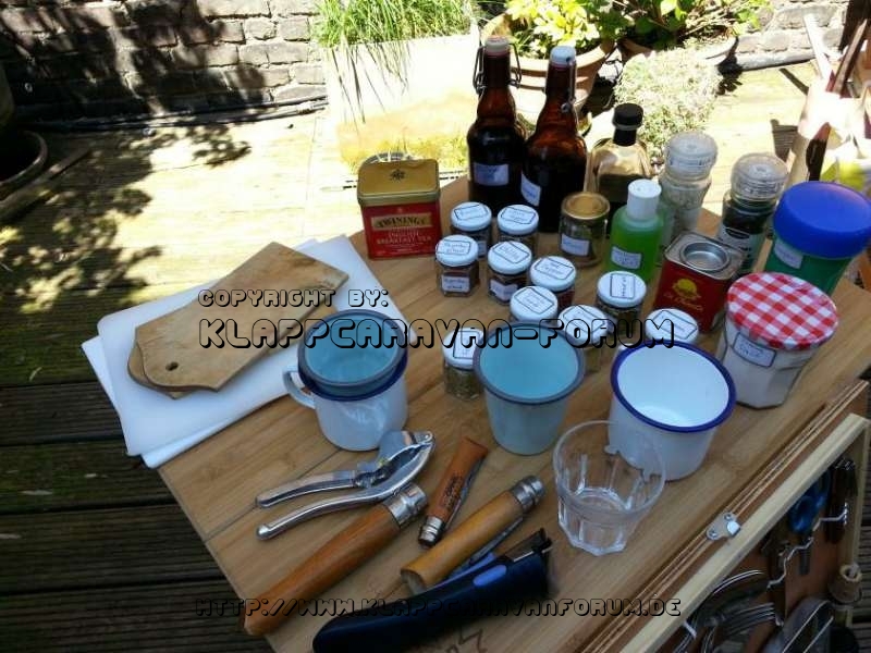Den Plastik Muelleimer hab i durch an kleinen blechernen ersetzt....mag die Deckelbefestigung...an der kann ma den auch aufhaengen...da kommen dann auch ka Tiere ran und machen a Sauerei..wenn ma nid aufm Zeltplatz...