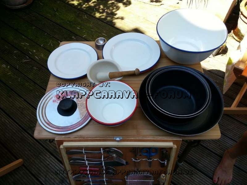 Auseinandergnommen passt nid alls aufn Tisch, von der Matryoshka, alls doppelt, bis auf den Keramik Moerser, fuer Pestos oder Marinaden brauch i den, bin auch auf Emaill Geschirr umgestiegen....a Set mit rotem Rand und eins mit blauem...Toepf und Pfannen haben an Stiel den ma anklipsen kann, super System, vor Jahren mal in Frankreich gekauft..