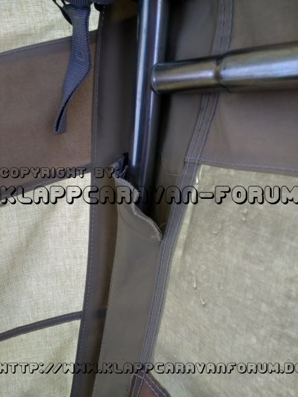 nachdem ich ja schon im Marktplatz eine Anzeige geschaltet haben, haben wir einen Raclet Safari angeboten bekommen der bei uns in der Nähe wäre. Laut Laut Aussage des Verkäufers steht er gut da hat aber ein Problem. Ein Naht im Vorzelt, mit dem die Rundstangen am Vorzelt fixiert wird, ist zum Teil aufgegangen.Zur Verdeutlichung ein Bild