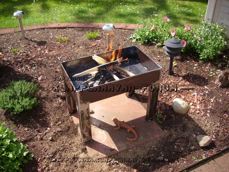 ich spiele schon länger mit dem Gedanken, mir einen Dutch-Oven zu kaufen. http://www.youtube.com/watch?v=-0bvK0Ns0PU Nachdem ich nun beim Treffen an der Tannenwiese, Anne und Günni mit ihrem Dutch-Oven live erleben durfte und auch aus dem Pott den leckeren Nachtisch (Namen schon längst wieder vergessen) gegessen habe, konnte ich nicht anders, nun ist es soweit, das Ding muss nun endlich zu mir. Doch so einfach auf den Rasen, oder auf die Terrasse gestellt, ist nicht. Die Glut würde alles versengen und meine liebste Ehefrau, mich mitsamt dem Pott in die Wüste schicken. Also baute ich mir einen „Feuertisch“. Dieser ist aus 5 mm Stahlblech und 300mm vom Boden weg,das langt.Von den Abmessungen ist ger gerade noch campingtauglich, was ein wichtiges Kriterium für mich war. Damit ich lange freude an dem guten Stück habe, wurde er von mir mit einer Mischung aus Öl und Graphit eingepinselt, welches sich einbrennen und eine Patina bilden soll. Weiter habe ich auch gleich ein Grillrost aus Niro-Rundmaterial zusammen geschweisst, damit ich neben den leckeren Sachen aus dem Pott,auch noch schnell ein par Steaks oder Würstchen grillen kann.