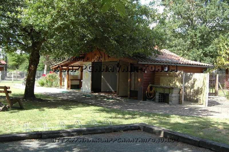 Das große Sanitärhaus, die Grillstellen und die Freizeiteinrichtungen liegen gemeinsam zentral. Im hinteren Teil gibt es noch ein weiteres Sanitärhaus. Weitere Wasserentnahmestellen mit Abwasserentsorgungsmöglichkeit und Open-Air-Duschen sind über den Platz verteilt.